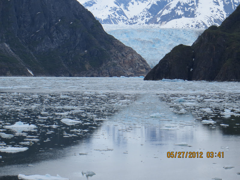 This would be our first so called stop. We entered the "Arm of Tracy" about 1:00 pm Sunday! We had traveled 848 miles since we left Seattle! The temperature was around 46 degrees with a moderate breeze. When we saw the first floating piece of ice we were so excited!!! The glacier was more than impressive and beautiful!